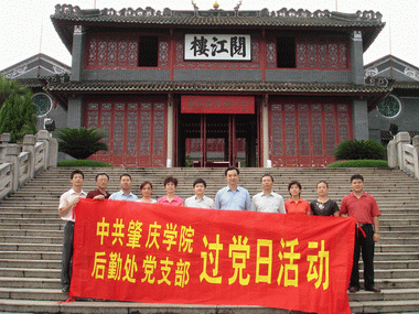 8月22日下午,后勤处党支部组织全体党员到端州区阅江楼叶挺革命军独立团旧址进行参观。后勤处党支部结合实际,围绕共产党员先进性教育活动的主题,以大家较为熟悉的端州区革命先烈的事迹开展教育思想党员活动,以生动、感人的英雄事迹启发教育党员干部,让党员过一次有意义的党日活动。 学院领导曾桓松副院长以普通党员的身份参加了这次党日活动。 党员们怀着对革命先烈无比崇敬的心情,认真参观了阅江楼叶挺革命军独立团的旧址展览,倾听展览厅的讲解员对革命烈士英雄事迹的介绍,缅怀革命先烈保持共产主义崇高理想、为革命事业浴血奋战的感人情景,无不对革命先烈的英雄事迹表示赞叹。党员们表示,通过参观阅江楼叶挺革命军独立团旧址展览,使自己的思想受到了一次深刻的教育,加深了对保持共产党员先进性教育活动的认识,我们一定要加强理论学习,向革命先烈学习,坚定共产主义的理想和信念,保持共产党员的先进性,克己奉公,努力工作,积极完成学校和上级领导交给我们的工作任务。