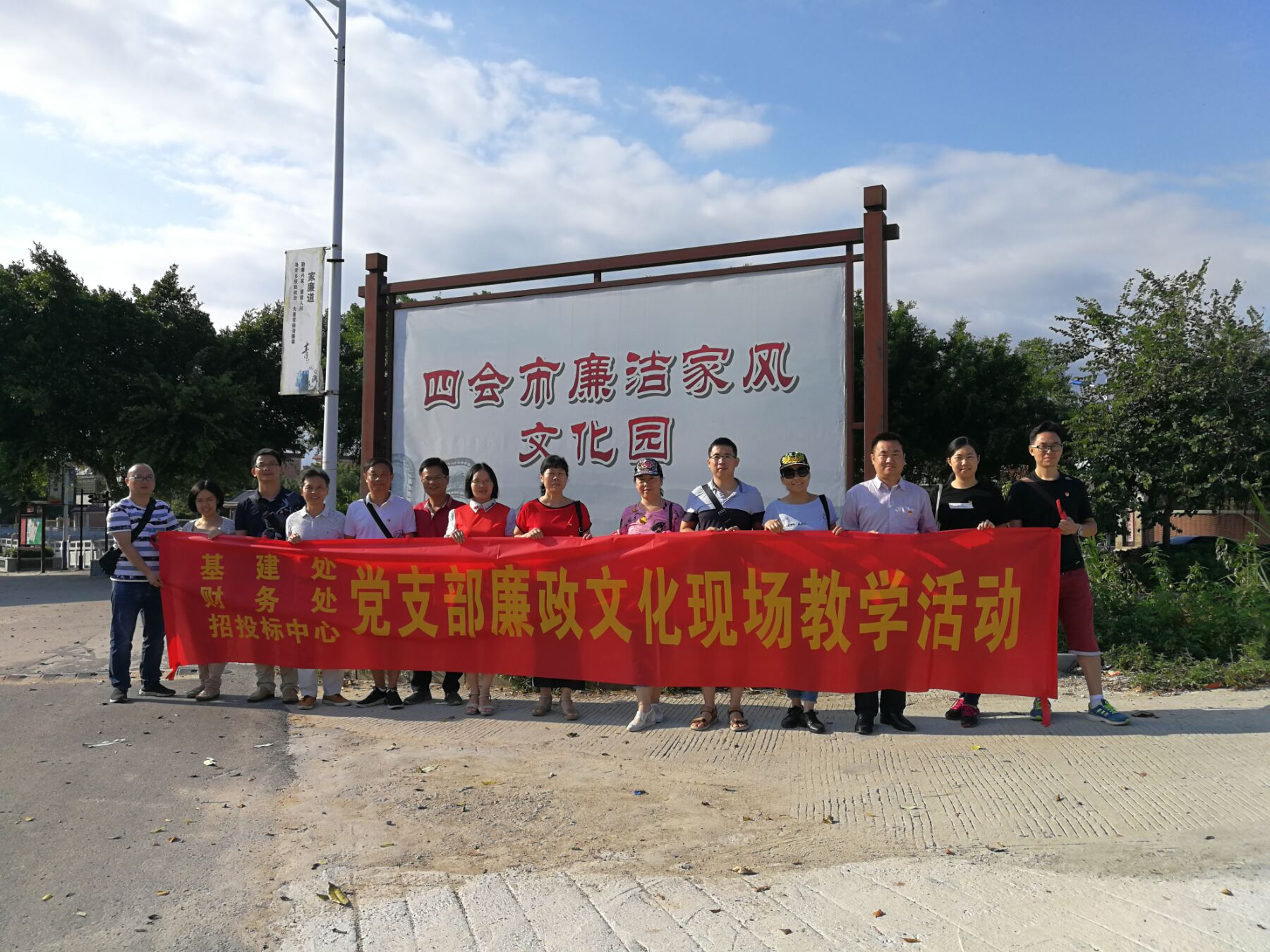 9月28日下午,基建处党支部、财务处党支部和招投标中心党支部来到四会市龙甫镇龙头村廉洁家风文化园进行参观, 开展廉政文化现场教学活动。活动旨在进一步加强党风廉洁建设,弘扬优秀传统文化,提升党员干部廉洁自律意识和防腐拒变能力。
