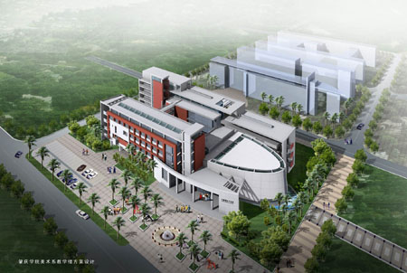 美术楼建设地点位于音乐楼南面,校园主入口西面。用地面积3880平方米,总建筑面积8935.6平方米。主楼五层,局部六层,总高度为25.4米。