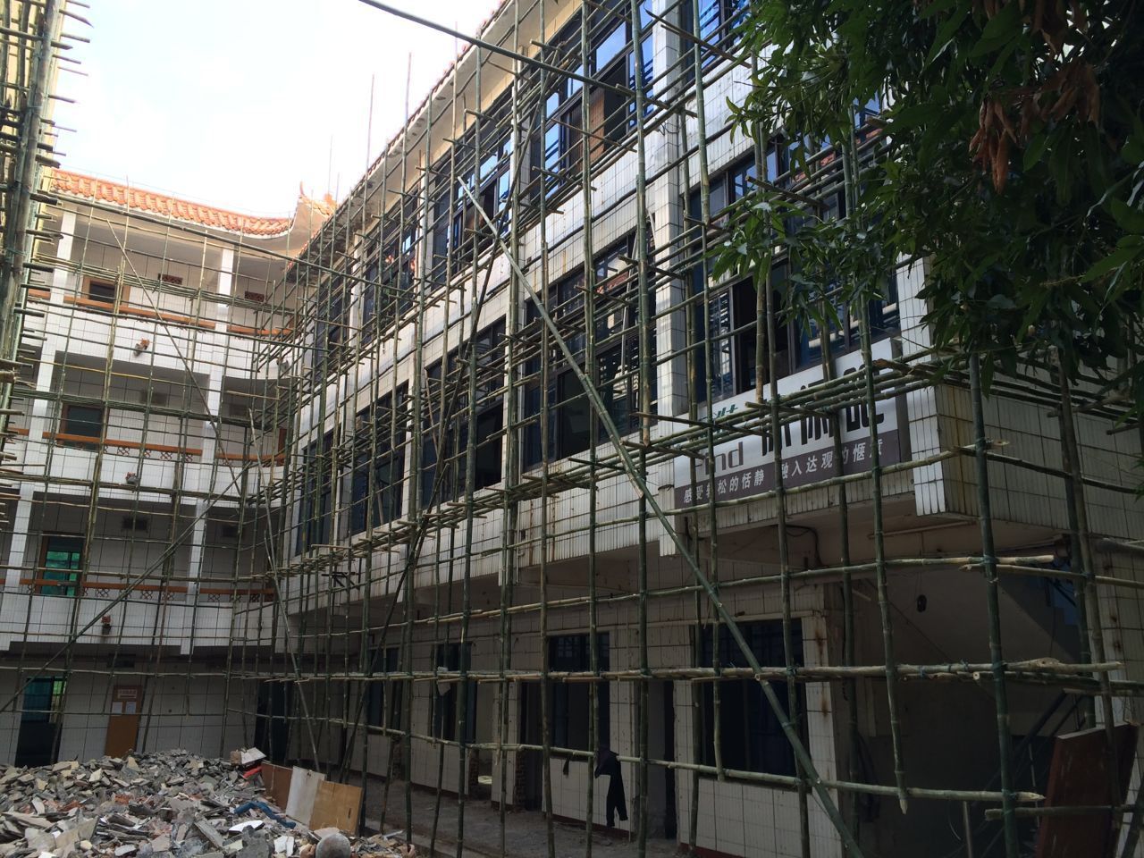 旅游与历史文化学院教学实验楼改造工程属于旧楼改造工程,工程位于学院西北角(原学术交流中心),改造面积2350㎡,施工单位为广东粤诚建筑工程有限公司,本工程于2014年12月25日正式动工,合同工期160日历天。
