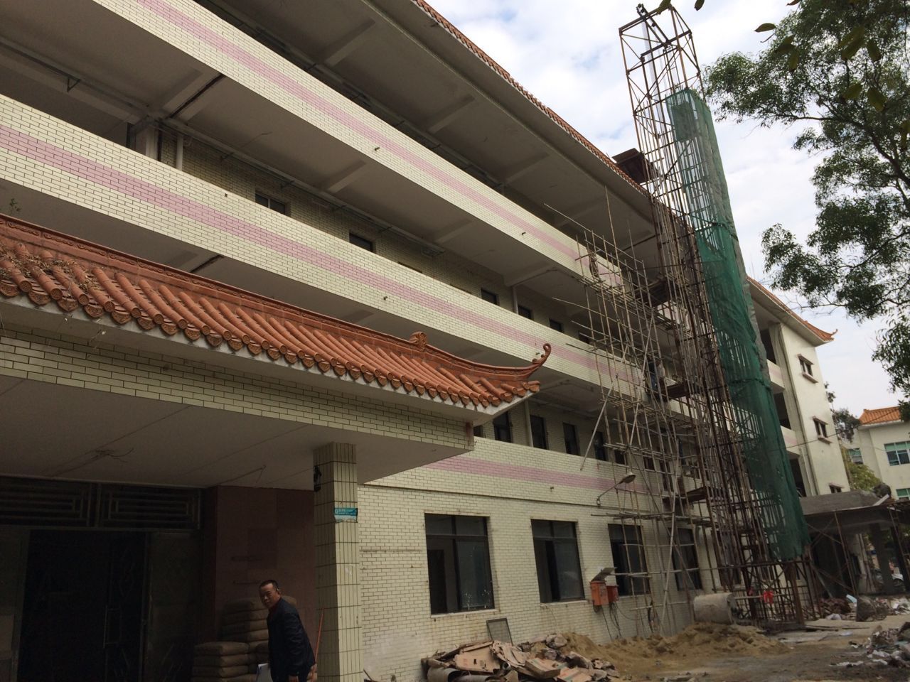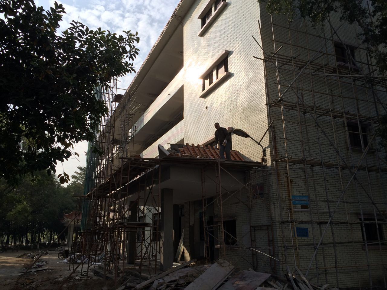 经管与数计学院教学行政用房改造工程属于旧楼改造工程,工程位于学院东南角(原化学楼),改造面积2420㎡,施工单位为广东中凯建设工程有限公司,本工程于2014年11月23日动工,合同工期90日历天,目前本工程已完成拆除工作,正进行装饰装修工作。