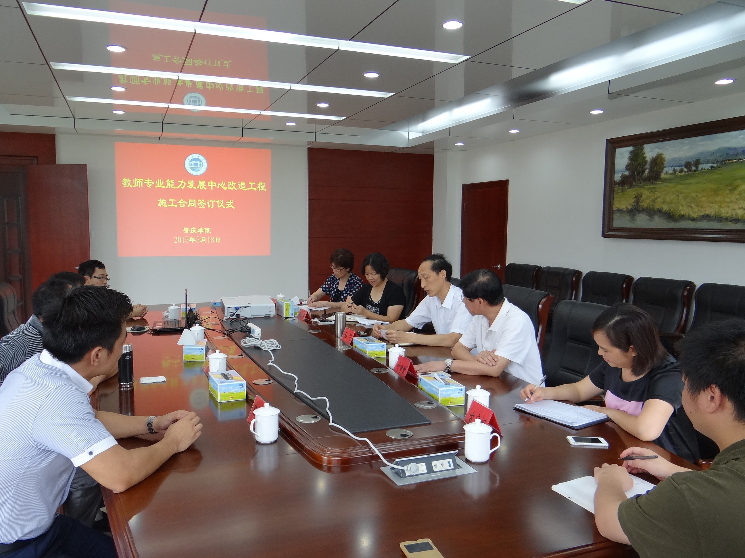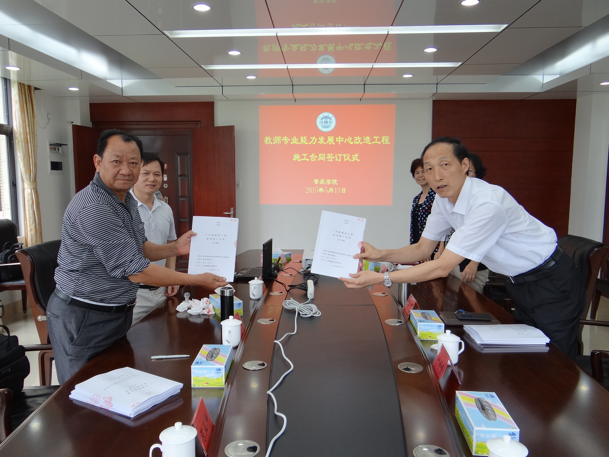 我校教师专业能力发展(实训)中心改造工程项目,在完成公开招投标等前期报建程序后,于5月18日上午正式签订施工合同。和飞校长和叶峥嵘副书记代表学校在校长会议室与中标单位江西茂盛建设工程有限公司签订施工合同。这标志着教师专业能力发展(实训)中心改造工程进入实际施工建设阶段。我校教师专业能力发展中心改造工程改造面积2934平方米,大楼为框架四层结构,工程中标价3704705.28元。改造内容包含室内外装饰装修、门窗更换、天面防水隔热、电气照明、给排水及综合管线布线工程等内容,合同工期为150日历天。