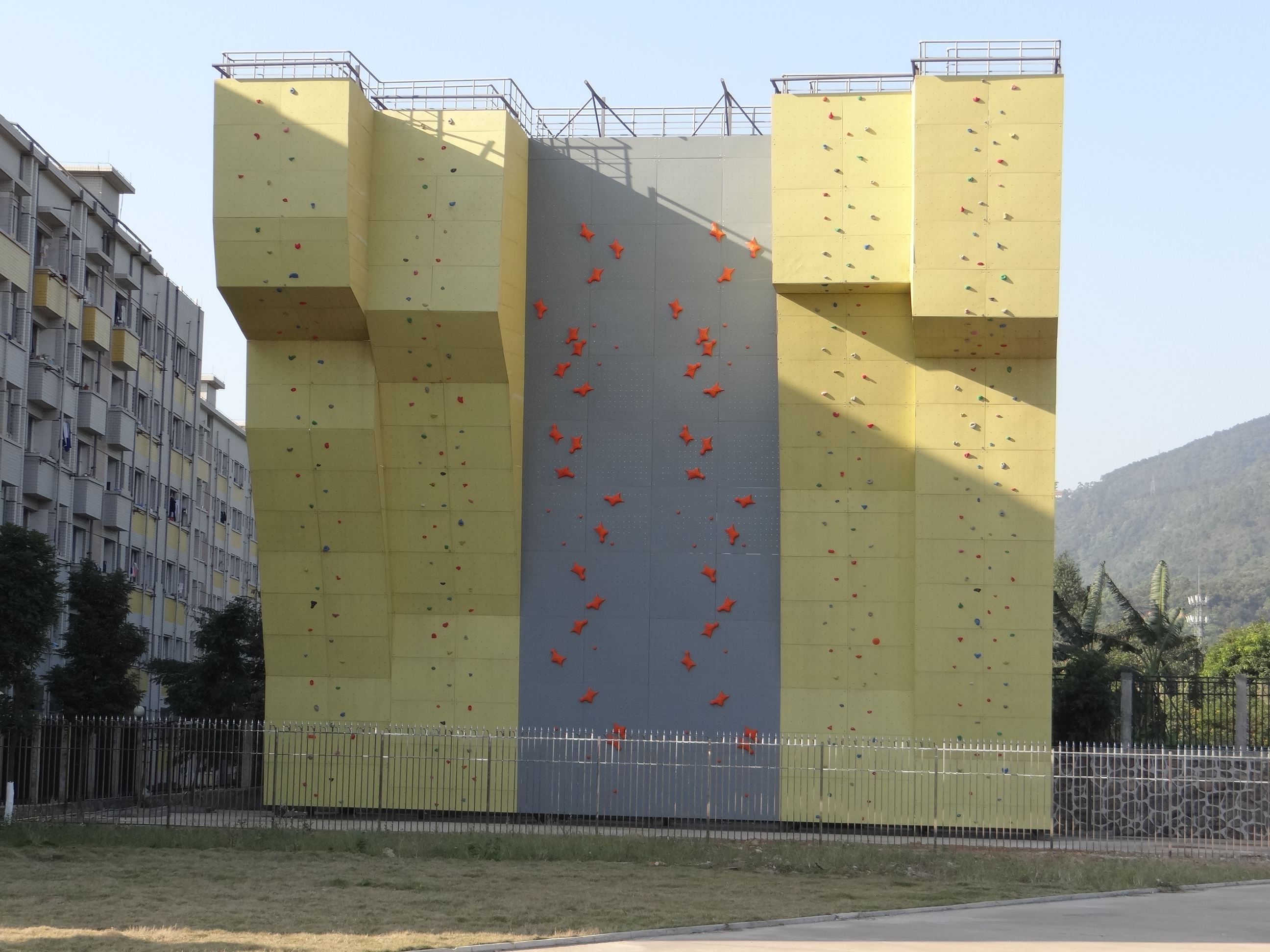攀岩工程及周边附属设施工程于12月16日竣工验收并交付使用。本工程位于学院东北角第二运动场内,由珠海市华城园林工程有限公司承建,于2015年3月28日动工,完全按照国际比赛标准设计与施工,可举行国际性攀岩比赛。