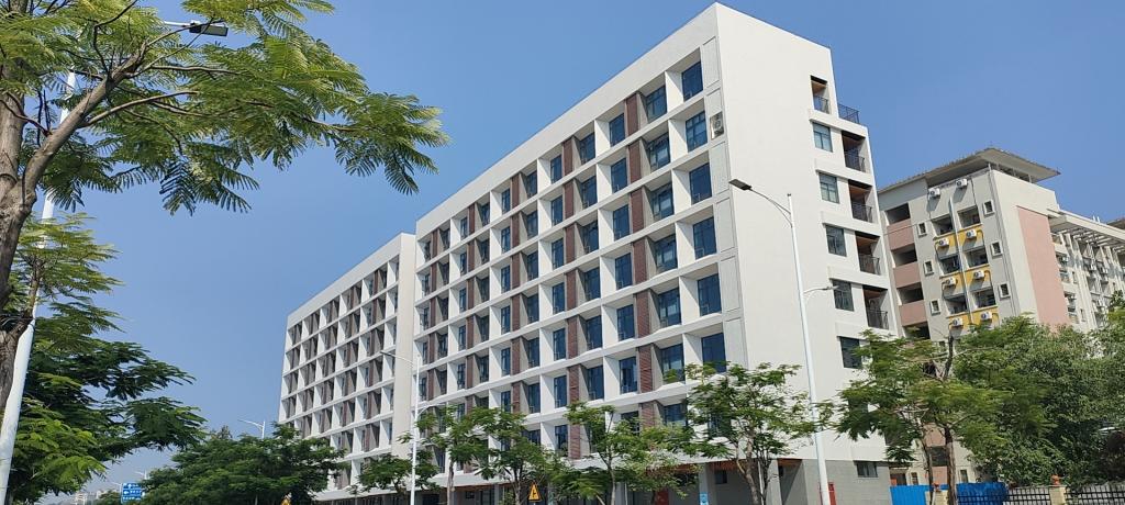 教学实训楼位于主校区学生宿舍D2栋南侧,占地面积1210平方米,总建筑面积8131.5平方米,主体采用8 层钢筋混凝土框架结构。建成后主要为大学科技园及相关职能部门的对外办事窗口,因此楼宇将成为学校第一幢对外办公的大楼。