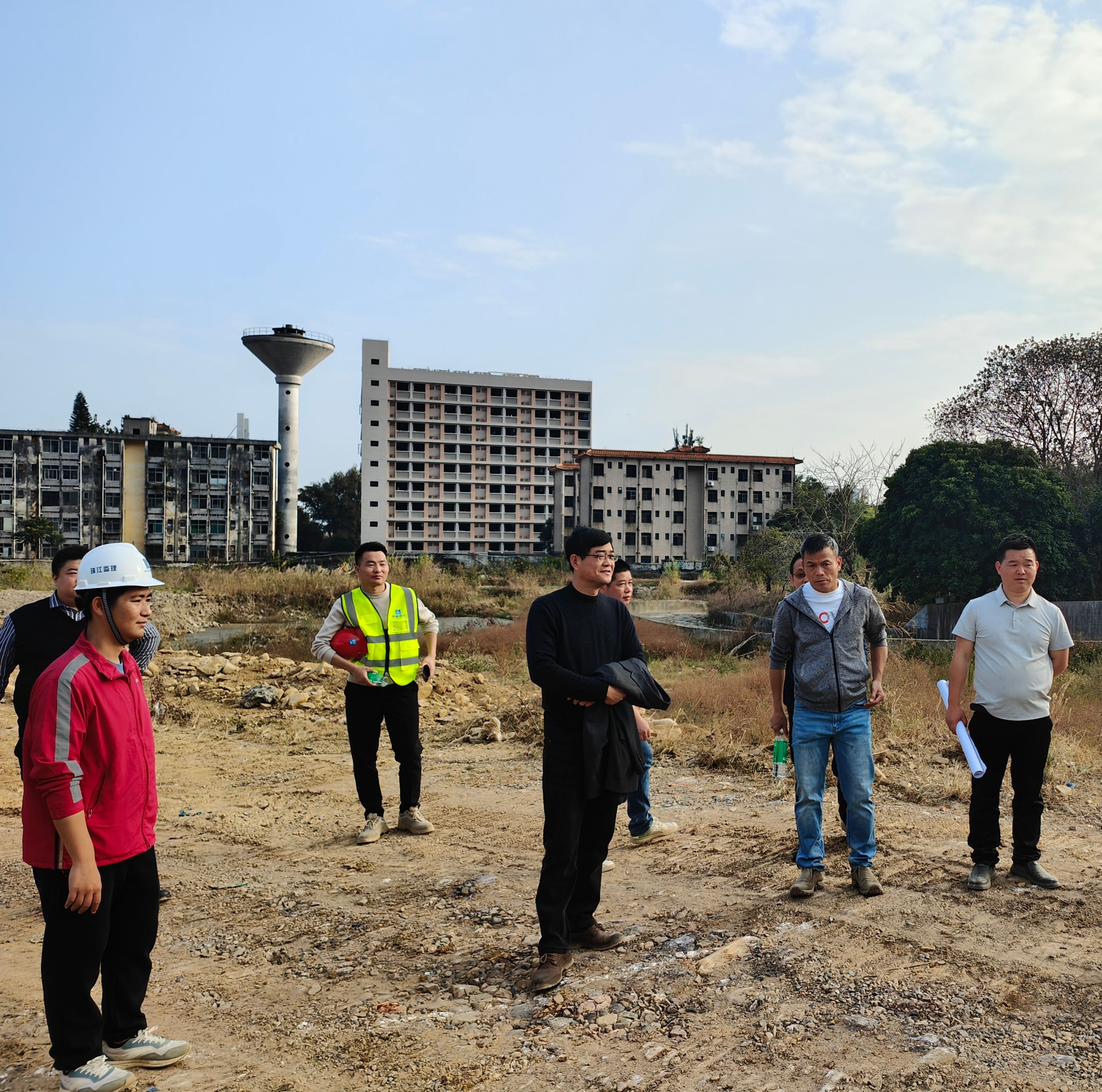 2月5日(年初八)起,新校园二期施工单位——中国建筑第六工程局有限公司(下文简称“中建六局”)、监理单位——广州珠江监理咨询集团有限公司(下文简称“珠江监理”)驻场管理人员陆续返回施工现场,施工单位马上组织机械、人员进行场地平整、项目部、生活区的搭设,正式开始新校园二期项目的施工建设。