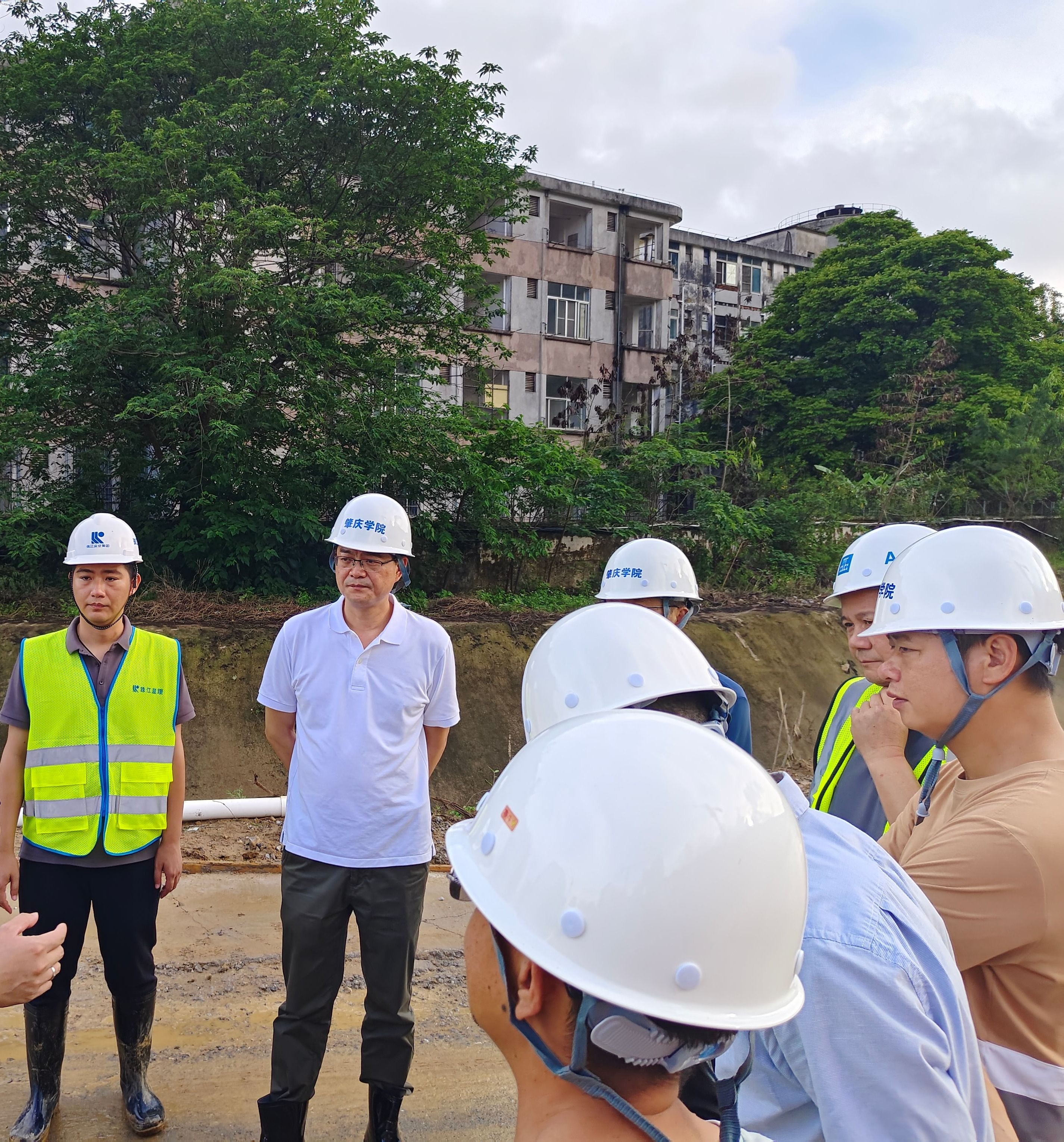 5月9日,副校长唐冬冬带队检查新校园防汛工作,基础建设部有关负责同志和新校园二期工程施工、监理等参建单位负责人参加检查。